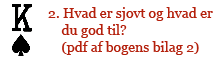Her er der ikke noget decideret skema, men en kort opskrift på, hvordan du opstiller og formulerer dine egne kompetencer. Herefter er det øvelsen:2. Hvad er sjovt og hvad er du god til? (pdf af bogens bilag 2)